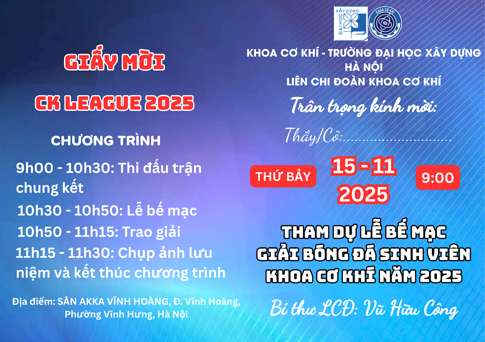 Đây sẽ là trận đấu mà mọi trái tim yêu bóng đá của Khoa Cơ Khí đều không thể rời mắt.