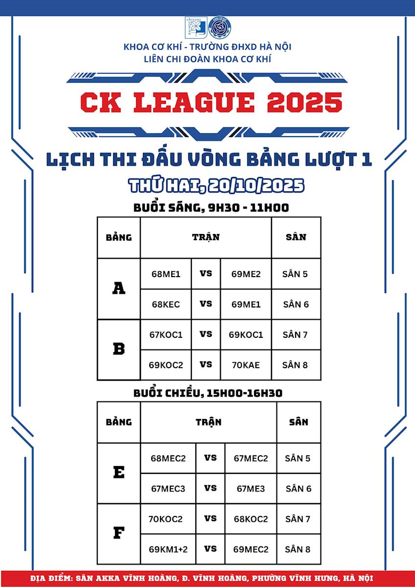 Tháng 10 này, không khí thể thao của Khoa Cơ Khí lại bùng nổ với sự trở lại đầy mong chờ của CK LEAGUE 2025 – Giải bóng đá sinh viên Khoa Cơ Khí!