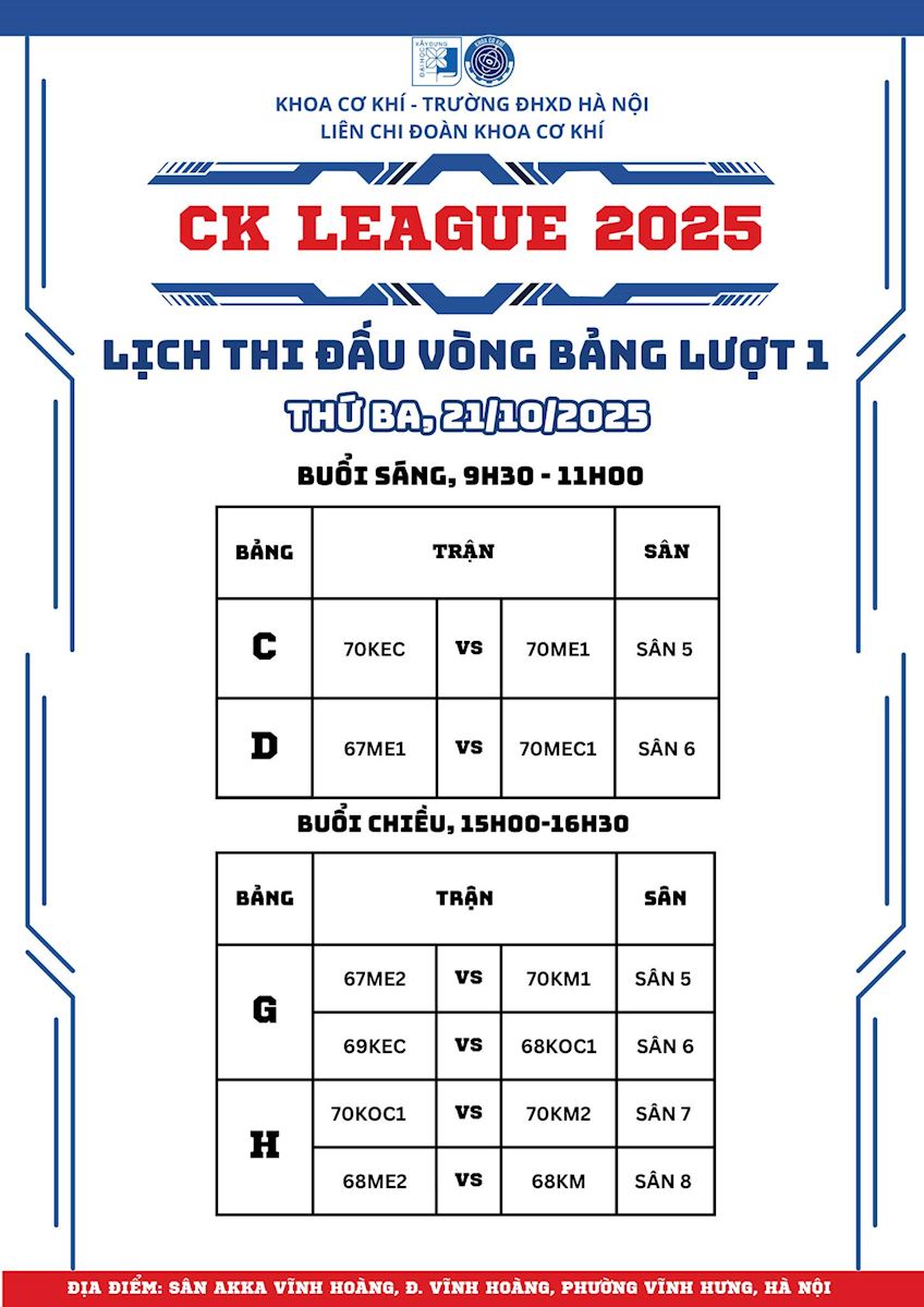 GIẢI BÓNG ĐÁ SINH VIÊN KHOA CƠ KHÍ 2025 – CK LEAGUE 2025 ![]()