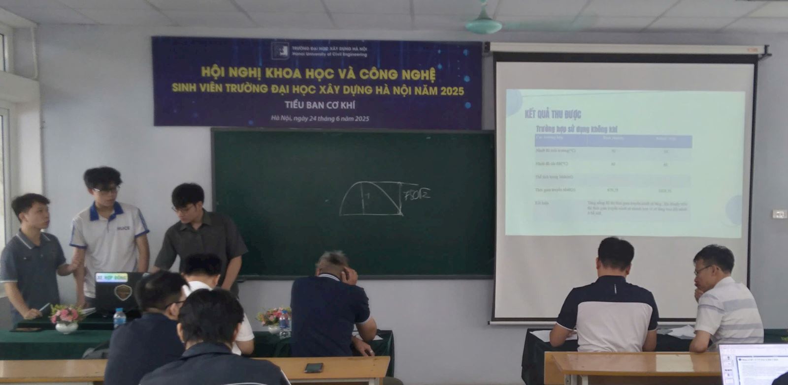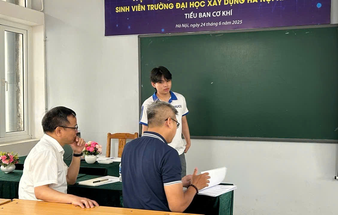 Sáng ngày 24/6/2025, tại phòng 204H1, Khoa Cơ khí – Trường Đại học Xây dựng Hà Nội đã tổ chức đợt 1 nghiệm thu và bảo vệ các đề tài nghiên cứu khoa học cấp trường do sinh viên thực hiện trong năm học 2024–2025.